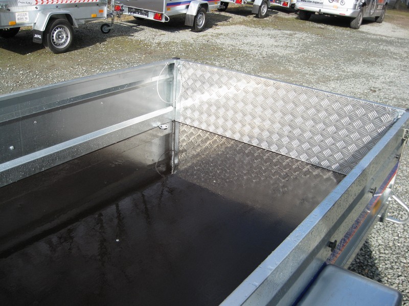 Jednoosý, nebrzděný nákladní přívěs - pevný žárově zinkovaný šroubovaný rám.